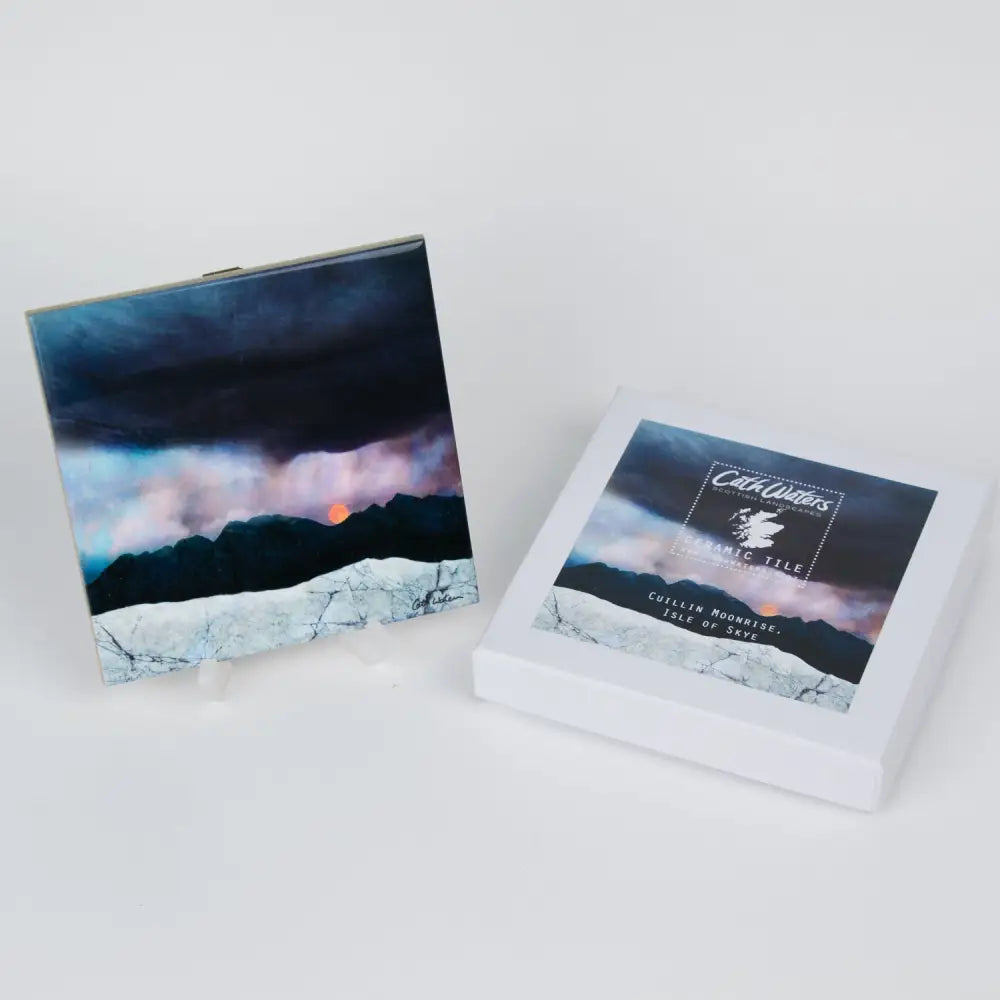 The Strawberry Moonrise over the Cuillins, Isle of Skye Ceramic Tile