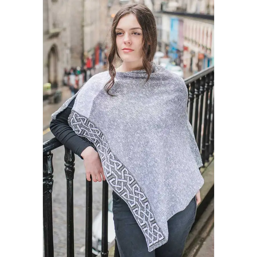 A fresh take on the Wallace shawl, the Ballater features a new 4 color Celtic pattern which can be worn in any number of styles.