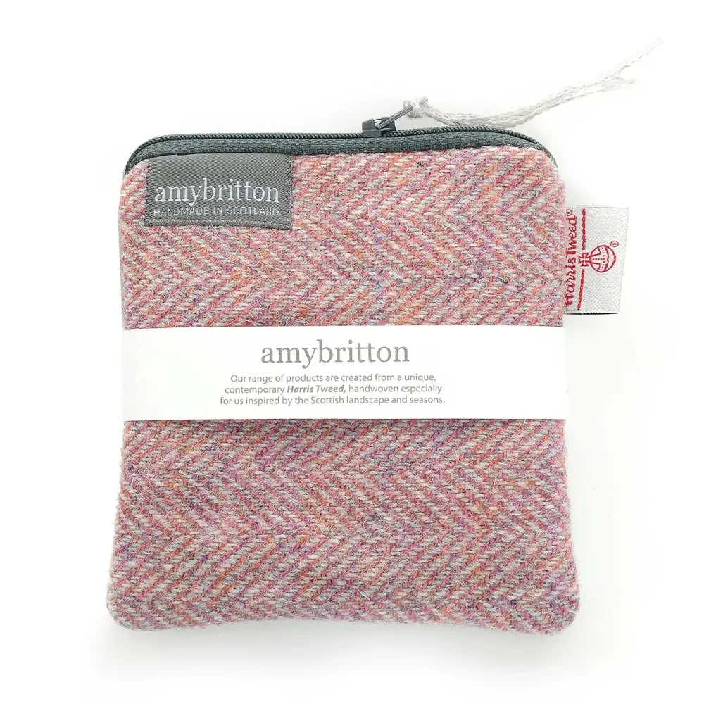 Harris Tweed® medium square purse with zip. Harris Tweed® on the front with grey tweed on the back.