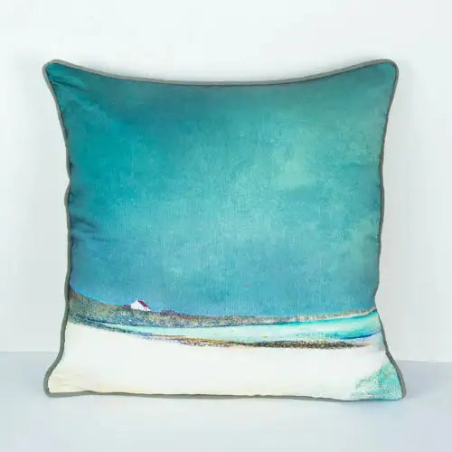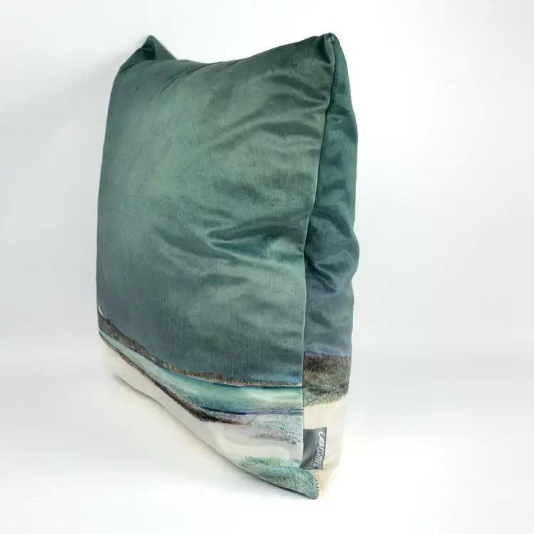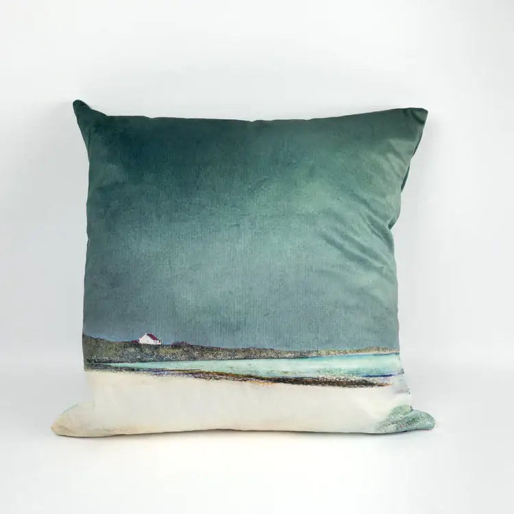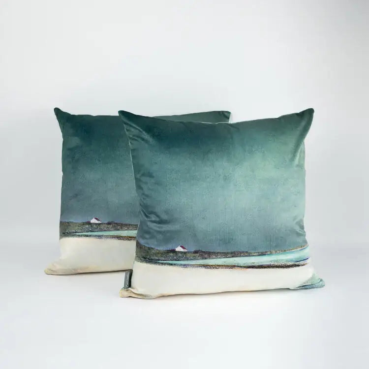 - Double sided velvet - Each cushion is 18" square with vibrant, removable covers, printed on both sides with Cath's Scottish Landscape Art. Cushions feature a hidden black zip