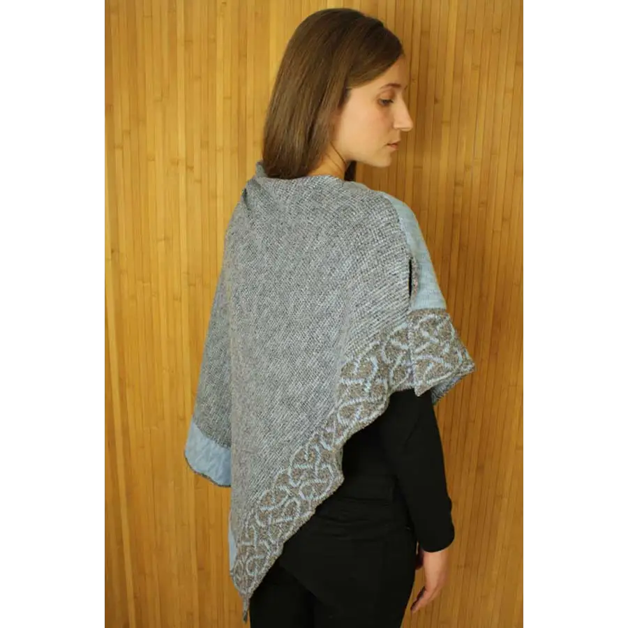 A luxurious shawl made from 50% Silk, 24% Linen & 16% Cotton. And... it is made in Scotland in the Grassmarket in Edinburgh. A lovely shawl based loosely around a poncho shape, a fantastic ‘go everywhere’ shawl.
