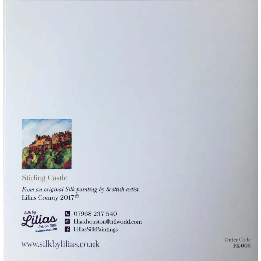 Stirling Castle Card , a lovely card for anyone who loves the old Scottish Castles. This card has been left blank inside for your own personal message.