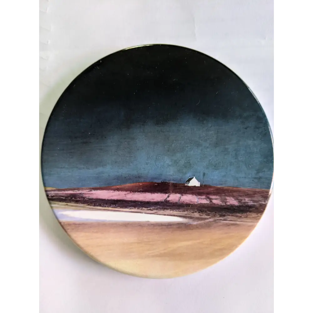 A beautifully glossy, 9 cm cork backed ceramic coaster.